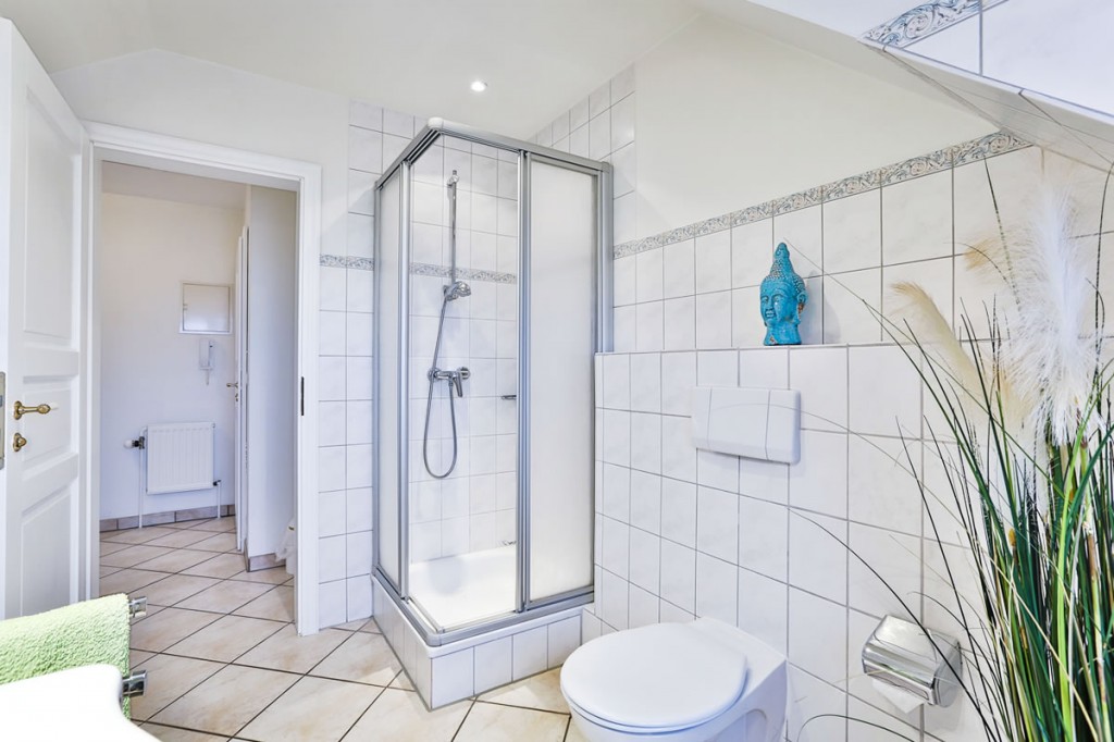 Im Schlafzimmer mit komfortablem Doppelbett und großem Kleiderschrank fühlen Sie sich sofort zuhause. Das moderne Duschbad mit WC rundet die Ausstattung ab. Zusätzlich steht Ihnen ein Telefon mit kostenloser Flatrate ins deutsche Festnetz zur Verfügung.